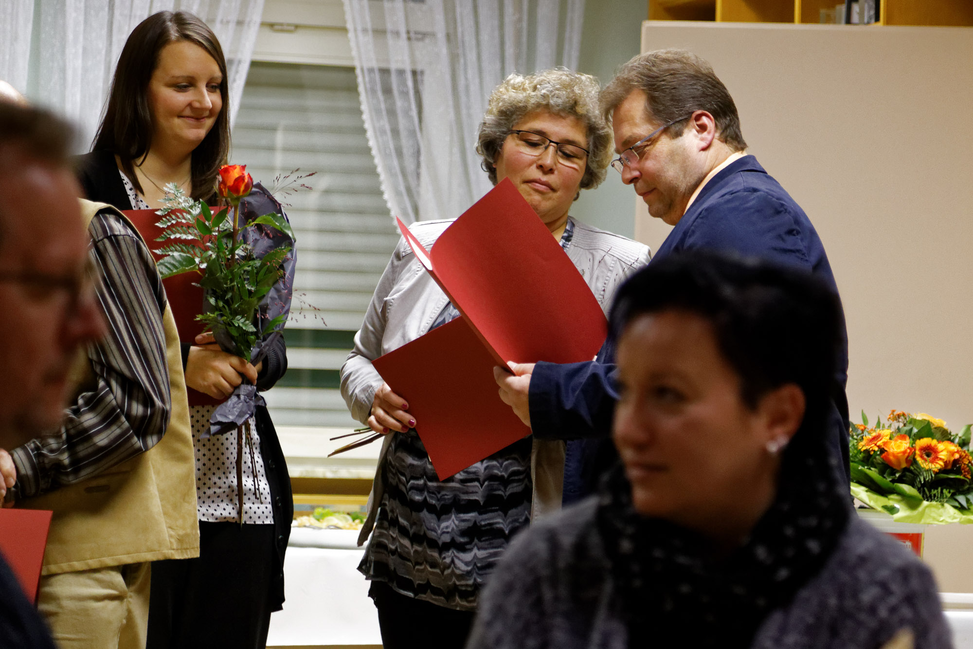 Hierzu empfing man diese im festlich dekoriert Vereinsheim. Geehrt wurden für 15 Jahre: Gertrud Frohnapfel, Ulrike Harperath, Irene Keller, Ursula König-Michels, Gisbert Kessler, Klaus Milchels, Günter Weis, für 25 Jahre: Sandra Pommer und für 40 Jahre: Renate Baureiß, Tanja Kraft, Birgit Reeg sowie Michael Baureiß und Bernd Schmenger. Leider konnte aus gesundheitlichen Gründen Herr Rudolf Maixner seine Ehrenurkunde für 65 Jahre Mitgliedschaft nicht in Empfang nehmen. Auch Heinrich Schneider der mittlerweile 80 Jahre dem Verein angehört war der Weg in Vereinsheim vergönnt. Beide werden im Nachhinein vom Vorsitzenden Dietmar Meinlschmidt ihre Ehrung erhalten. Einen besonderen Dank wurde dem Vorsitzenden a.D. des Ortsvereinsrings Bischofsheim, Detlef Gärtner für seine Arbeit und Bereitschaft zum Wohle aller Vereine und seiner Frau Ingrid ausgesprochen. Wie es Tradition ist so sind an diesem Abend auch die Spartenleiter von Karate, der Damengymnastik, wer rastet der rostet und der Radwanderer und Mittwochsradler sowie diejenige welche das ganze Jahr über ihre Freizeit als ehrenamtliche Helfer zum Dienste des Vereines opferten, eingeladen. Nach der Ehrung ging man zum gemütlichen Teil des Abends über und lies sich das Kalt-Warme Buffet munden. Es gab an diesem Abend nur rundum zufriedene Gäste zu denen auch die Bürgermeisterin Ulrike Steinbach und der Erste Beigeordnete Reinhold Rothenburger gehörten.